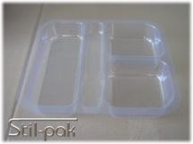 Posude za kuvana jela se izradjuju od ekoloski ispravnih materijijala:PS, Pet i sl. i to u boji po zahtevu kupca, npr.transparentno kao na slici(PET) ili u beloj boji (PS) |