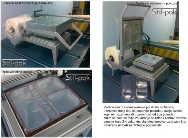 Zatvaranje ambalaze se vrsi uz pomoc namenske varilice za termovarenje ambalaze koju po potrebi izradjujemo za nase kupce